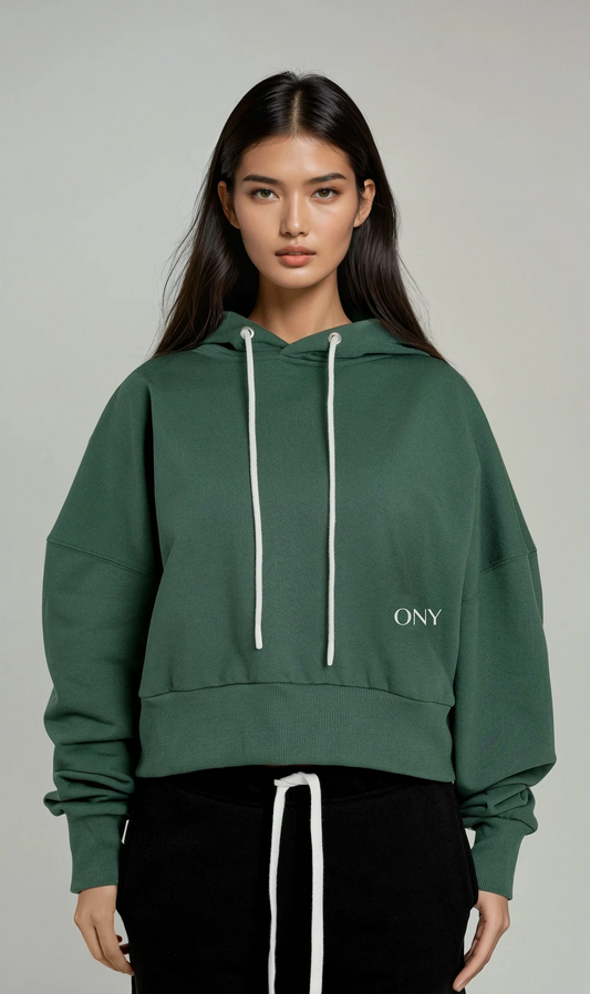 GREEN WOMEN'S CROPPED HOODIE