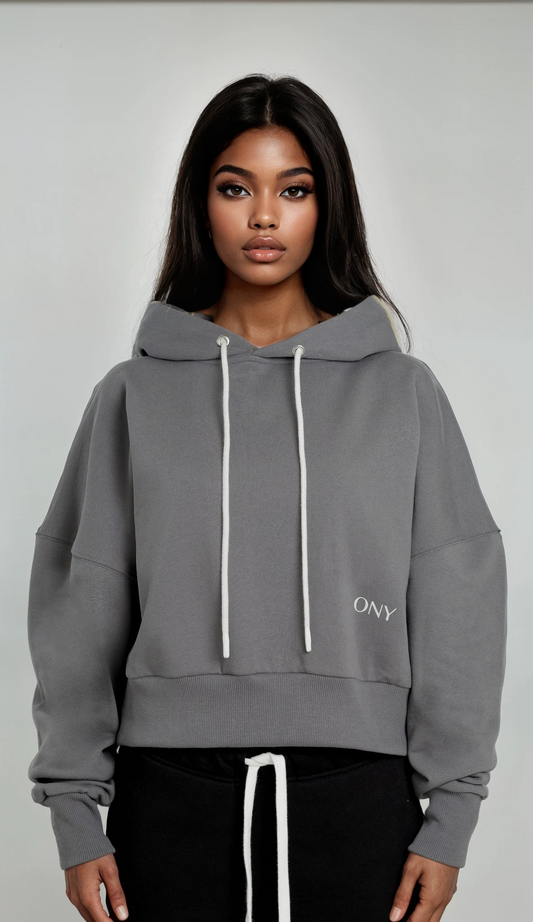 GREY WOMEN'S CROPPED HOODIE